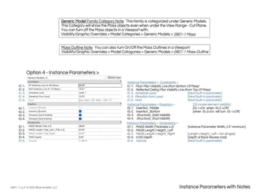 Applicable Quick Tips: Family Visibility below/above Cut Plane, Cut Objects with Family, Side Mass/Finish Material, Insertion Point Options, Generic Model Family Visibility, Mass Outline in Plan Views